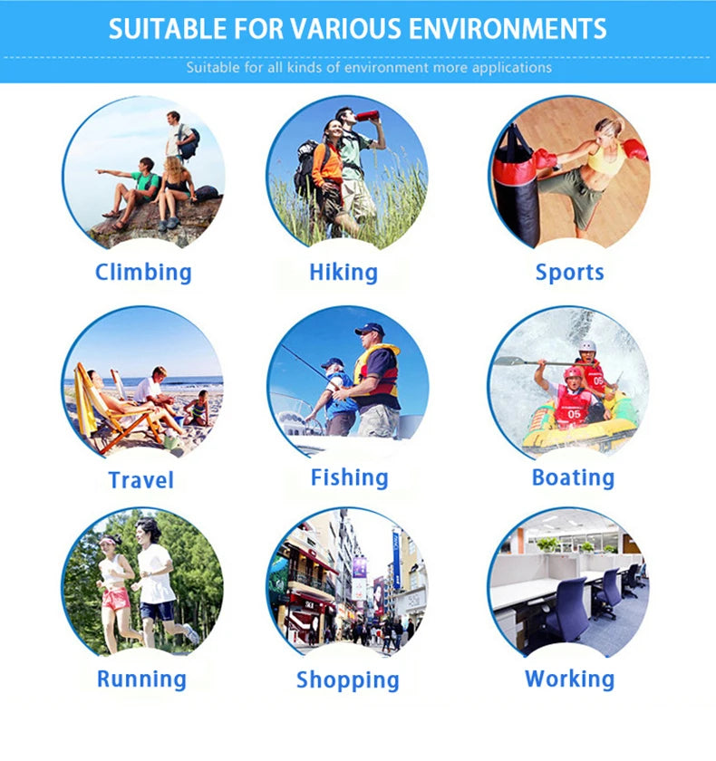 11. Sport Type: Camping,Trekking,Hiking,Hunting,Climbing,Fishing,Cycling,Running,Travel,Daily,Group.
